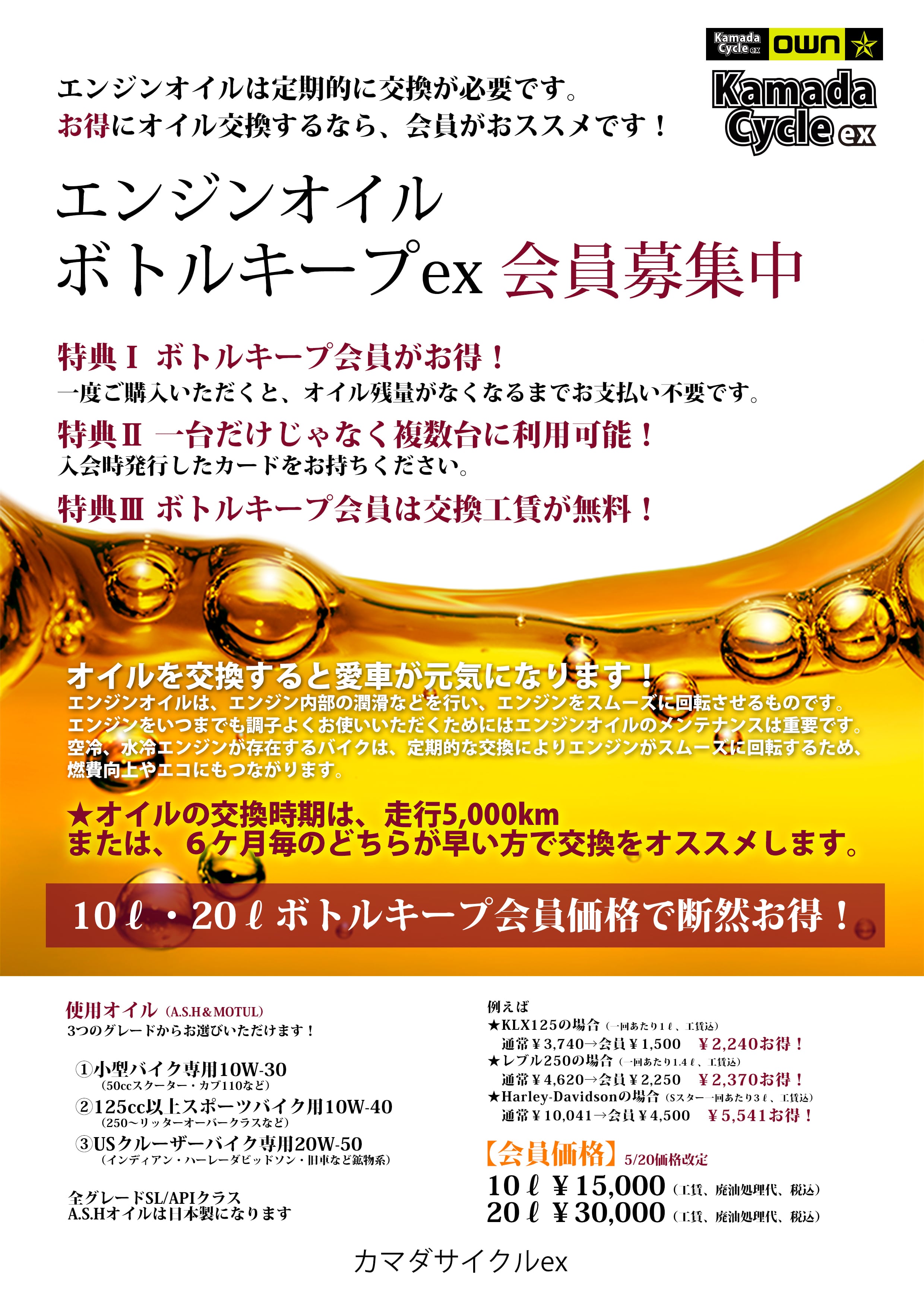 エンジンオイル「ボトルキープ」会員募集中!