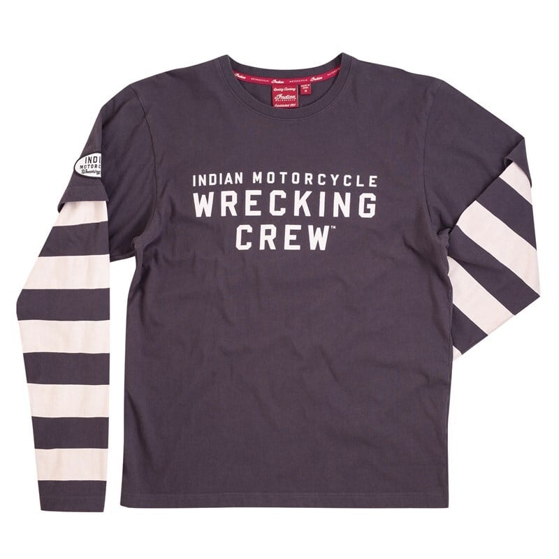 インディアンモーターサイクルレッキングクルー™の優れた遺産を称える、独特のレトロなスタイルのTシャツ