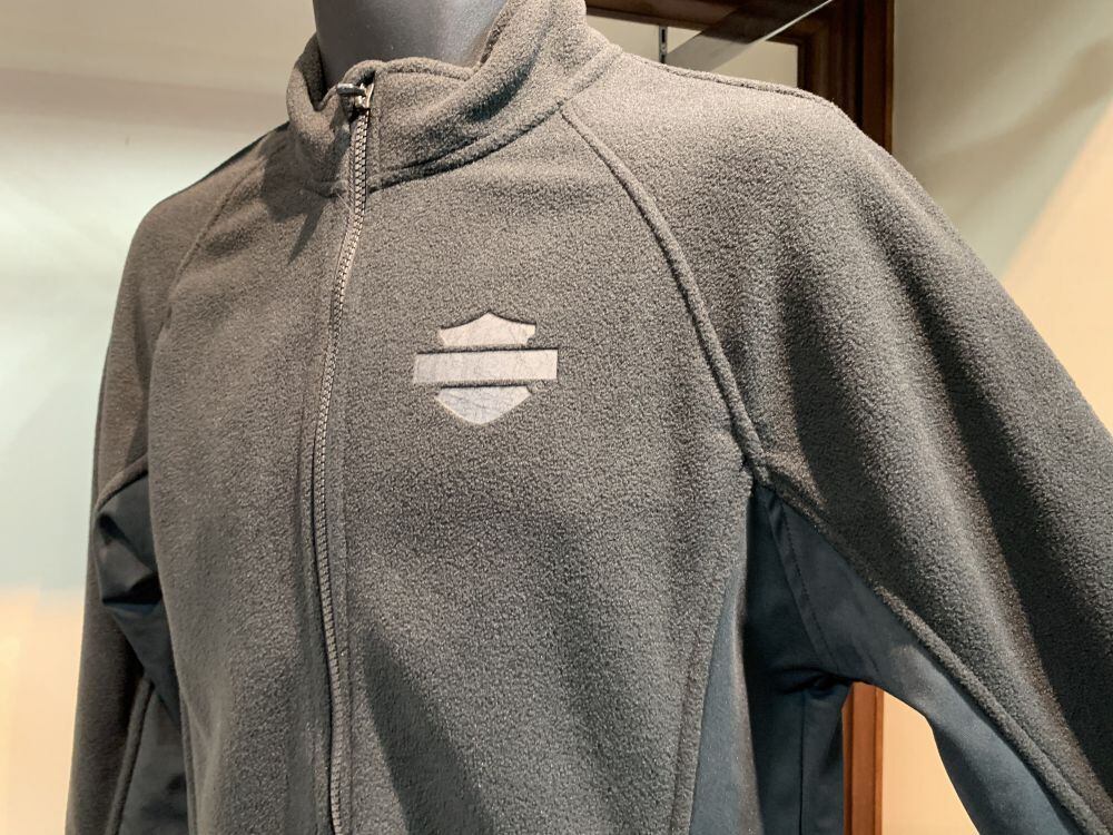 とても肌触りの良いフリースを使い、胸と背中にH-Dロゴをデザイン。脇部分は、伸縮性の高い素材を使用。
