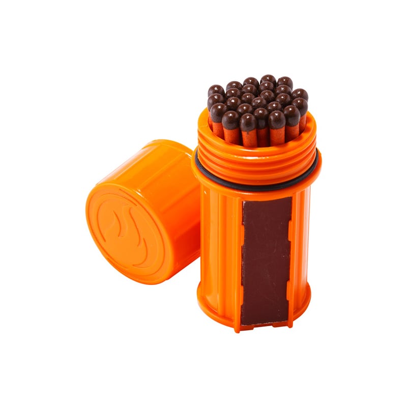 雨に濡れても、風に吹かれても確実に着火するマッチ。いかなる状況下でも15秒ほど燃え続けます。非常用として1つ身につけておきたいアイテムです。密封性の高い防水コンテナ付き。