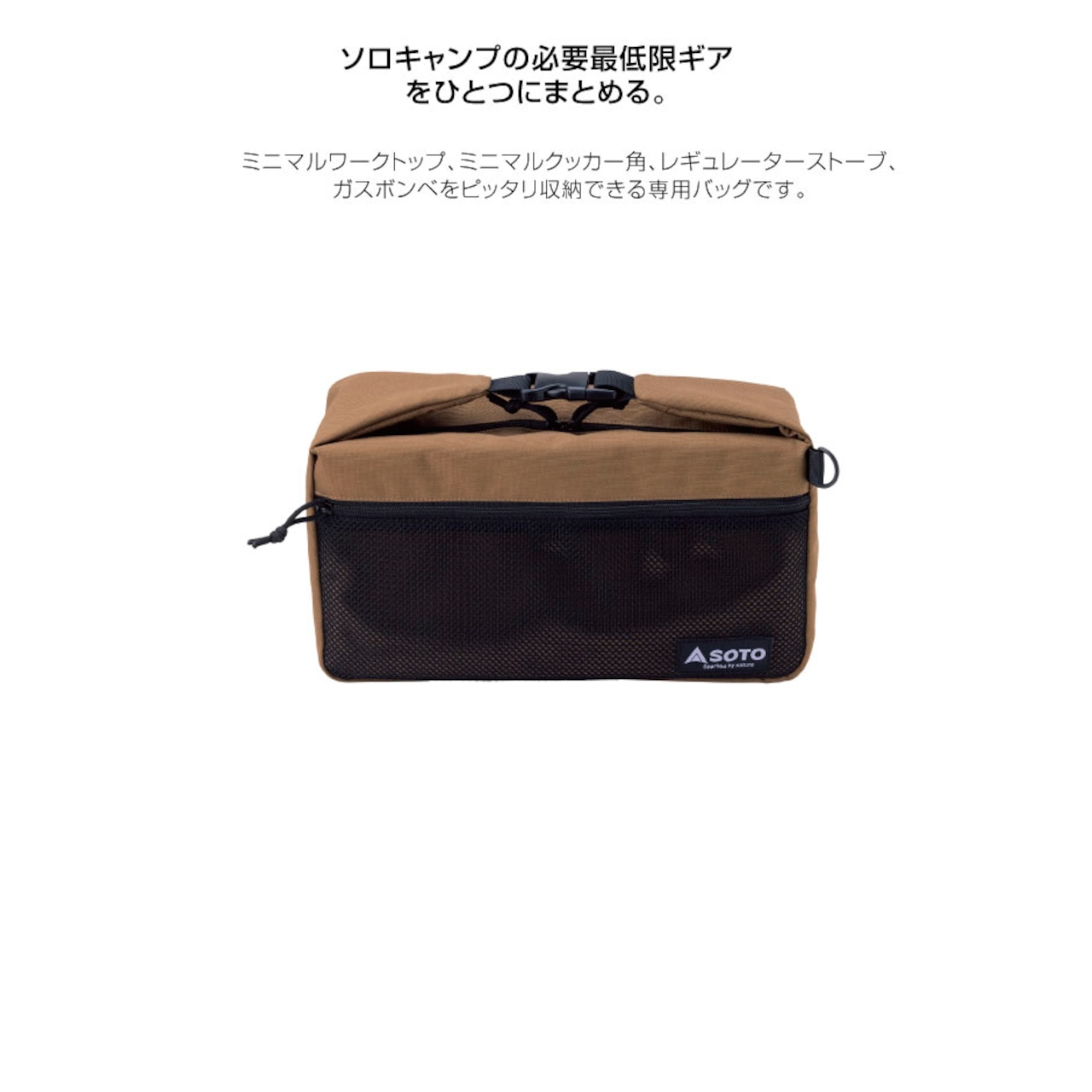 ソロごはんの必要最低限ギアを、ひとつにまとめられるバッグです。